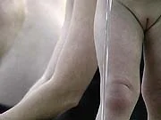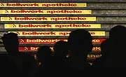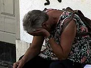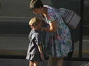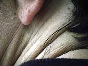 The videos on the monitors and projection screens are all of public areas: crowds on a train station staircase descending into darkness; people sitting on benches waiting for a bus; extreme close-ups of people riding on a tram (sunlit hair on the edge of an ear, wrinkles on the back of a neck).... Although shot, for the most part, in crowded outdoor spaces, the images seem extremely private, people's expressions marked by an intense introspection. The only scene where two people touch is a repeating loop of a mother ambiguously lifting her small daughter by her fragile neck.